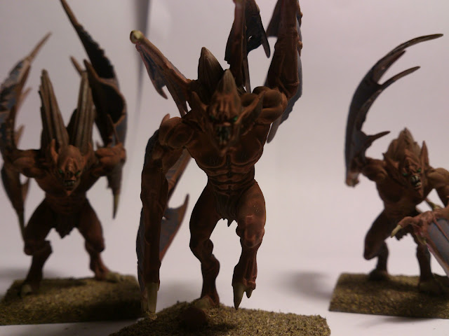 All I am doing is a quick undercoat, then a quick spray with G.W. Rotting Flesh all over then another spray of Vallejo Umber Shade Wash. A bit of colour detail on any weapons and wash then eyes in green and a quick basing. Done.